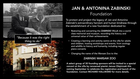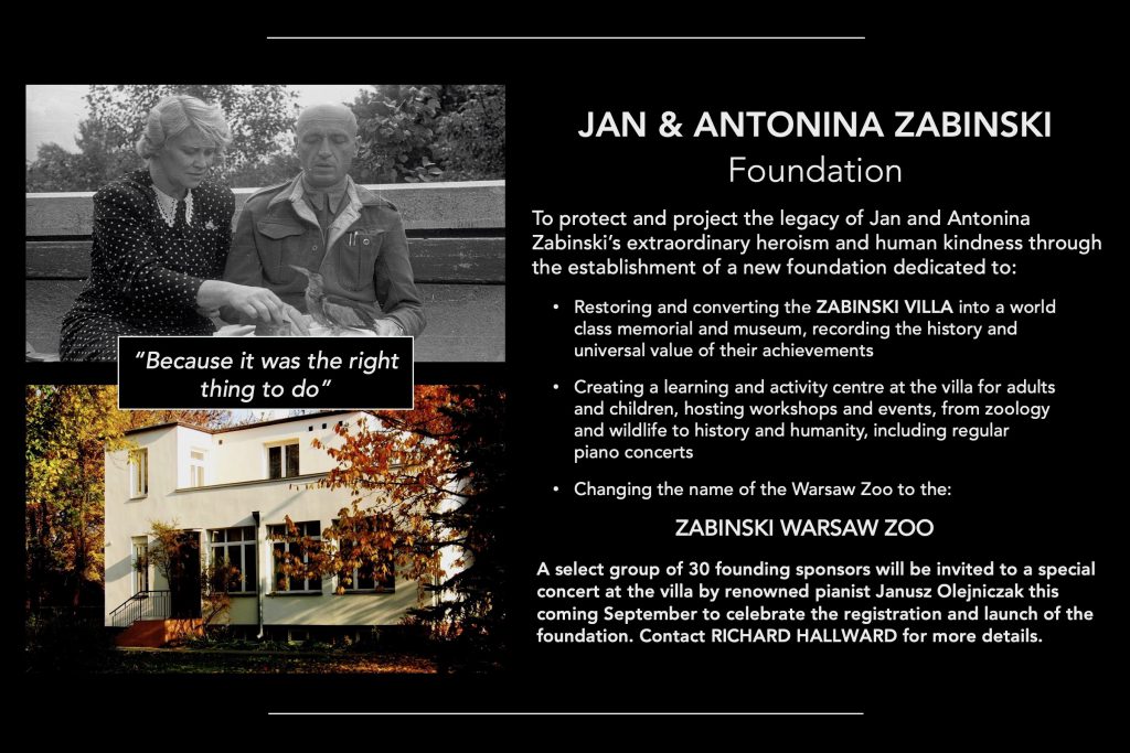 Many people are completely unaware of the extraordinary tale of incredible personal heroism, bravery and human kindness that took place within the grounds of Warsaw Zoo during World War II saving more than 300 lives at enormous personal risk, a new foundation is being established to commemorate and memorialise their achievements for future generations.
